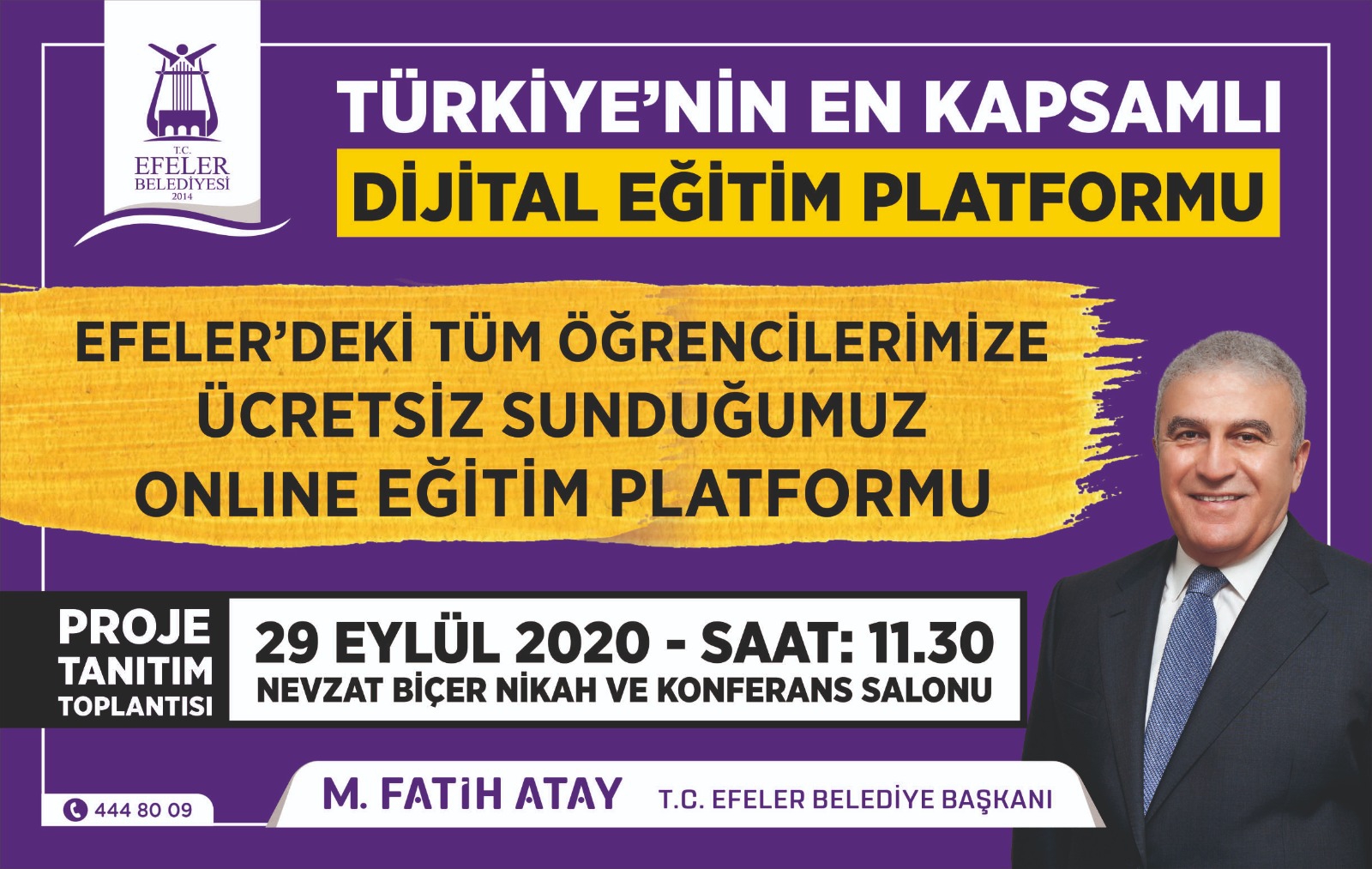Efeler Belediye Başkanı Mehmet Fatih Atay, 29 Eylül Salı günü saat: 11.30’da Nevzat Biçer Nikâh ve Konferans Salonu’nda Türkiye’nin en kapsamlı dijital eğitim platformu “Efeders.tv” ‘nin tanıtımını gerçekleştirecek.