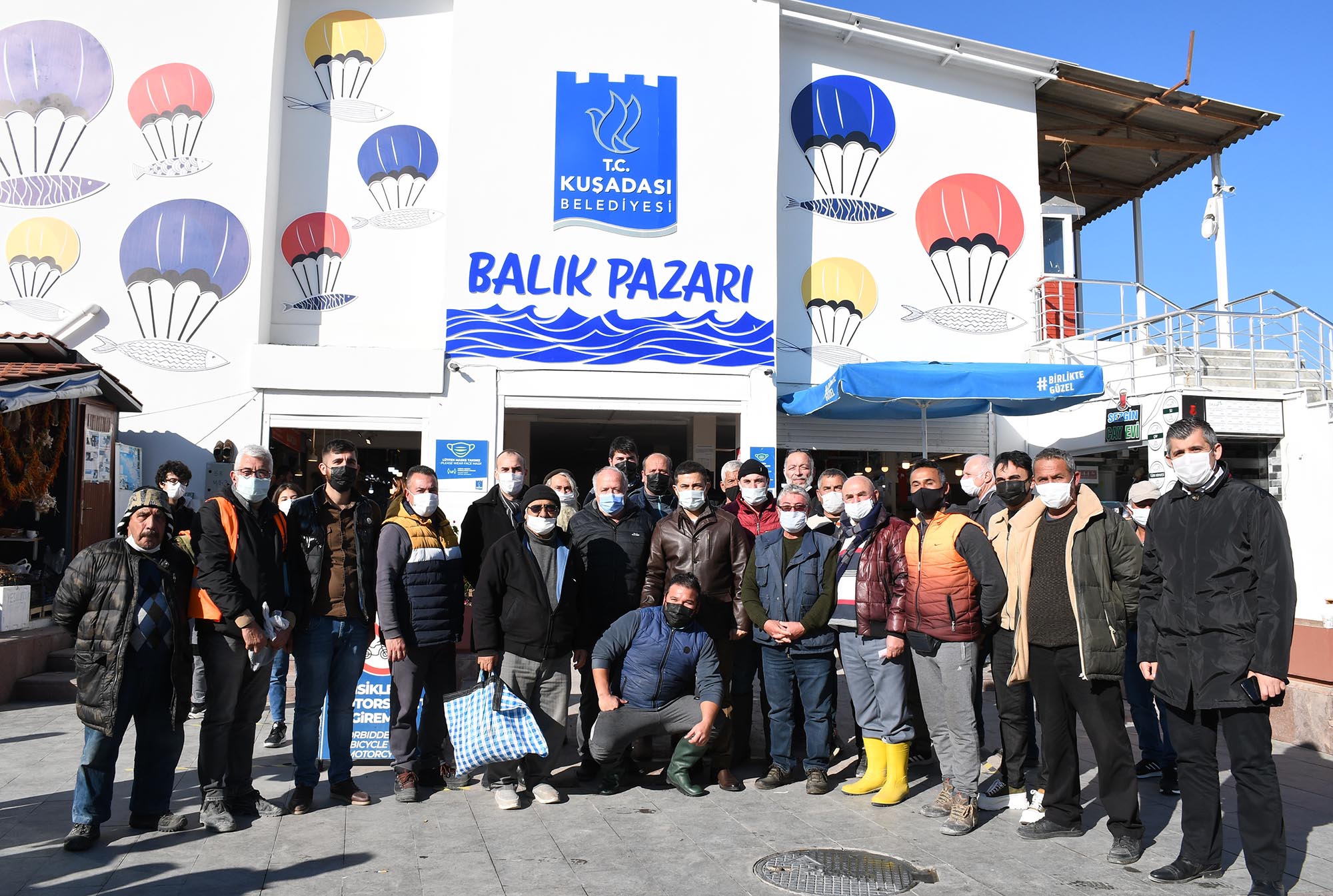 Kuşadası’nda turizmden sonra balıkçılığın en önemli geçim kaynaklarından biri olduğunu belirten Belediye Başkanı Ömer Günel, “Ekmeğini balıktan kazanan hemşehrilerimizi çok önemsiyorum. Sorunlarınızı yakından takip ediyoruz. Çözülmesi için elimizden geleni yapıyoruz. Balık pazarımızı daha modern bir görünüme kavuşturmak arzusu içerisindeyiz. Ancak bunun için esnafın bizimle iş birliği içerisinde olmasına ihtiyacımız var. Yılbaşından sonra sizlerle bir toplantıdaha yapıp, balık pazarında gerçekleştireceğimiz projeye son şeklini vereceğiz. Kuşadası Belediyesi olarak balık pazarı esnafımızın daima yanındayız” diye konuştu.