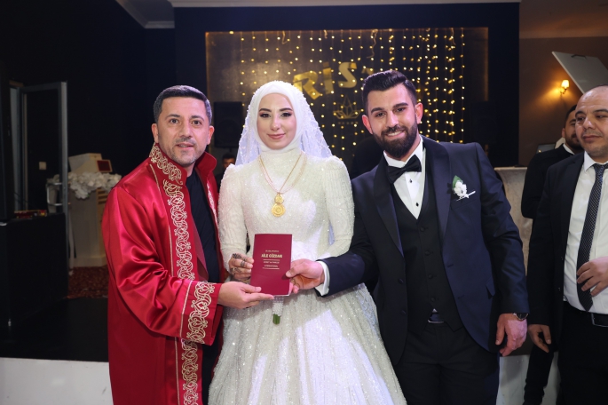 çiftinin nikâh akdini gerçekleştirerek mutluluklarına ortak olan Arı, gençleri tebrik ederek bir ömür boyu mutluluklar diledi.