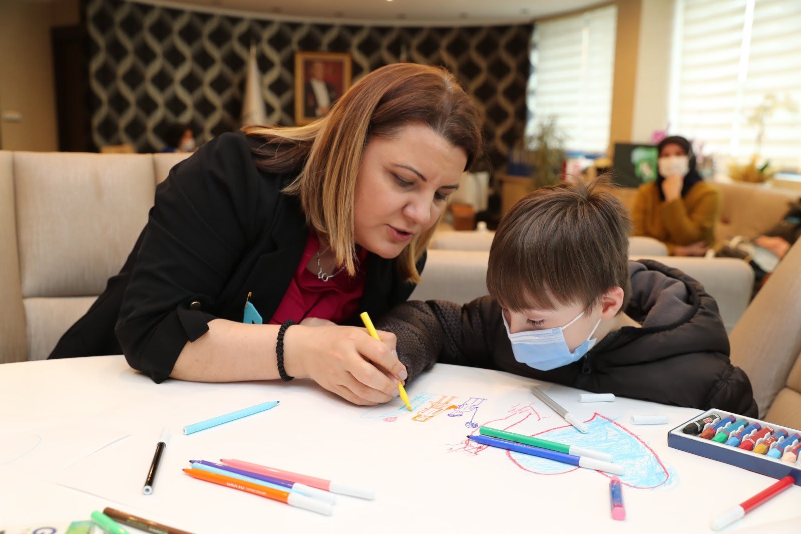 Hürriyet, özel çocuklarla HAYALLERİNİ RESMETTİ İzmit Belediye Başkanı Av. Fatma Kaplan Hürriyet, down sendromlu Ezgi Nur Kahraman ve Ali Kandemir’i makamında ağırlayarak onlarla birlikte hayallerini resmetti İzmit Belediye Başkanı Av. Fatma Kaplan Hürriyet, 21 Mart Dünya Down Sendromu Farkındalık Günü öncesinde down sendromlu Ezgi Nur Kahraman ve Ali Kandemir’i anneleriyle birlikte makamında ağırladı. İzmit Belediye Başkan Yardımcısı Sibel Solakoğlu, İzmit Kent Konseyi Başkanı Hüseyin Erol, Sosyal Destek Hizmetleri Müdürü Yasemin Gözkonan Kahveci ve Kocaeli Otizmli Çocuklar Derneği Başkanı İlkin Kılıçarslan’ın da hazır bulunduğu ziyarette belediye başkanı Hürriyet konuklarıyla yakından ilgilendi. RESİMLERİNİ HEDİYE ETTİLER Ezgi Nur Kahraman ve Ali Kandemir ile bir süre sohbet eden başkan Fatma Kaplan Hürriyet, daha sonra çocuklarla birlikte masanın başına geçerek resim yaptı. Hürriyet, down sendromlu çocuklarının hayallerini onlarla birlikte resmederken çocukların mutluluğu yüzlerinden okundu. Down sendromlu çocuklar büyük bir mutlulukla çizdikleri resimleri Başkan Hürriyet’e hediye etti. |