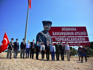 Kuvayı Milliyenin temellerinin atıldığı tarihi topraklardaki İlkkurşun Anıtına Ödemiş Belediye Başkanı Mehmet Eriş tarafından çelenk sunuldu. Daha sonra Büyük Önder Gazi Mustafa Kemal Atatürk, silah arkadaşları, şehitlerimiz ve gazilerimiz için Saygı Duruşu gerçekleştirilerek İstiklal Marşı okundu.