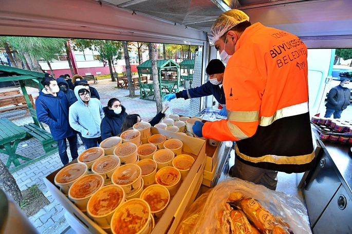 Dört noktada hafta içi her gün 17.00 ile 19.00 saatleri arasında öğrencilere yemek dağıtan İzmir Büyükşehir Belediyesi’nin altı noktada oluşturduğu Çorba Durakları da öğrencilere sıcak çorba hizmetini sürdürüyor.