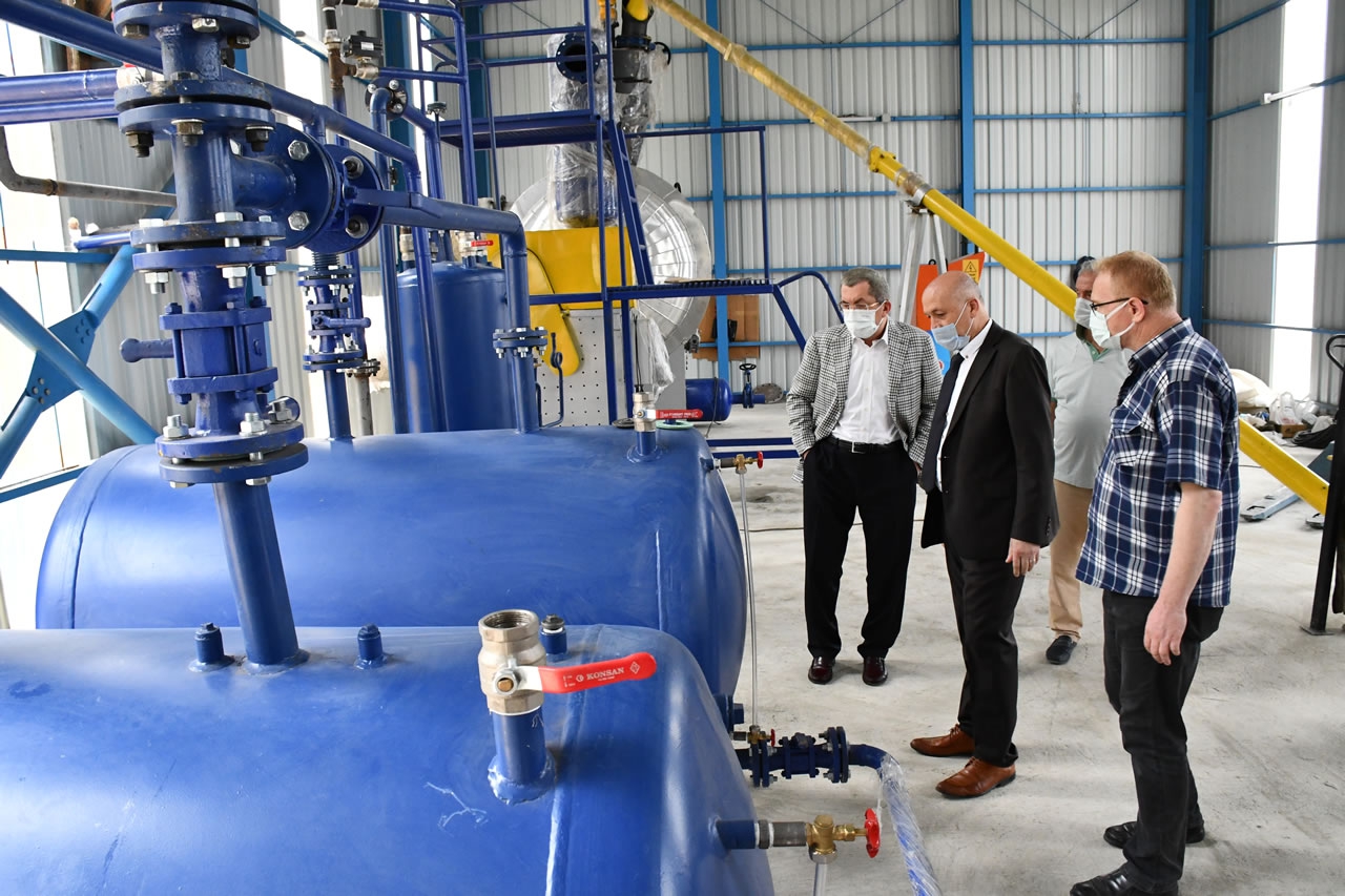 Karabük Belediye Başkanı Rafet Vergili, Karabük Üniversitesi Rektör Yardımcısı Prof. Dr. Mustafa Yaşar ve Karabük Belediyesi AB Proje Koordinatörü Ersin Özmen ile "Plastik Atıkların Piroliz Yöntemiyle Bertaraf Edilmesi ve Geri Kazanımı" projesi kapsamında yapılan tesiste incelemelerde bulundu.