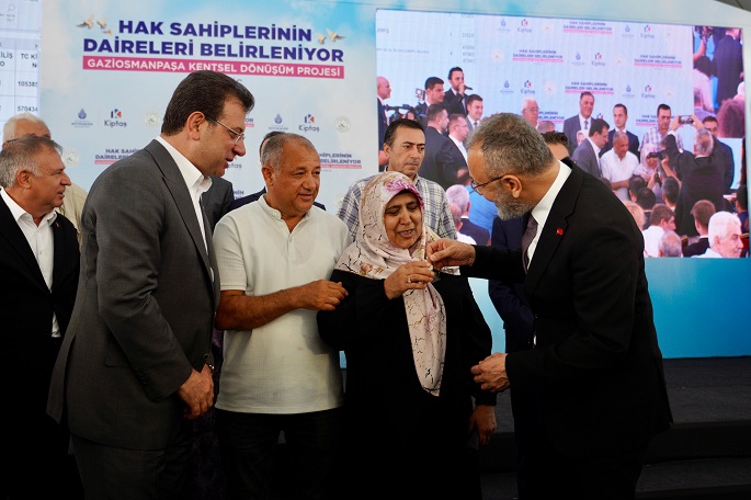 Konuşmaların ardından Bakırköy 23. Noter Başkatibi Nurettin Aytekin nezaretinde, tören kapsamında, 10 hak sahibinin belirlenmesi için çekilişlerine geçildi. Kamuoyunun, 24 Mart 2019’daki seçim kampanyası sırasında İmamoğlu’nun seçim otobüsünü, 4 tansiyonla, 4 kilometre boyunca takip etmesiyle tanıdığı, kendisi de Gaziosmanpaşa sakini olan 77 yaşındaki Müzeyyen Şahbaz da tören ve çekiliş boyunca İBB Başkanı’na eşlik etti.