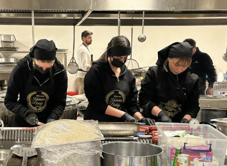 Geçen hafta ünlü şefler Ebru Baybara Demir ile Türev Uludağ’ın 100 bin depremzede için kurduğu muftağa girerek, yemek hazırlıklarına katkı sunan kadınlar, bu kez İskenderun’daydı. Uludağ ve Demir’in sosyal medyalarından teşekkür ettiği Birlik, bu kez BigChefs Kurucusu ve depremzedeler için gönüllü olarak bölgede bulunan Gamze Cizreli ile aynı mutfakta bir araya geldi. Heyet daha sonra İskenderun Tren Garı’ndaki vagon kentteki 500 çocuğa ihtiyaç malzemeleri ve oyuncak dağıttı.