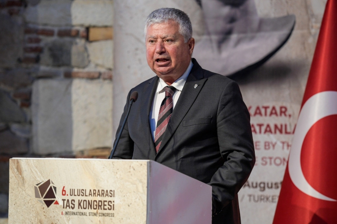 Doğal taşın öneminin kongre ile vurgulanacağına değinen İzmir Büyükşehir Belediyesi Başkan Vekili Mustafa Özuslu, “İnsanlığı aşan tüm tarihsel zenginliğiyle birlikte bir fenomen olarak taş, dünyamızın bugünkü şekliyle yaşıttır belki de. Dolayısı ile barındırdığı anlam ve bizi biz yapan en temel materyallerden biri olarak taşı ele alıyor olmak inanılmaz bir heyecan vesilesi aynı zamanda. Taş, ağaç ve toprak ile birlikte medeniyetlerin harcını oluşturan üç ana unsurdan biridir. Bugün içinde yaşadığımız kentleri de var eden en temel malzemedir taş. Sonsuzluğun sembolü olarak düşünülmüş ve günümüz kentlerine de zaman zaman kimliğini kazandıran görünmeyen kahramanı olmuştur. Bizler doğayı salt tüketim malzemesi olarak gören anlayışı reddediyoruz ve bu yüzden dünyaya bakışımızda doğayla uyumlu bir yaşamı merkeze koyuyoruz. Taşın barındırdığı kadim manaya hürmeti bir borç bilerek bu kaynakları birer yakut, elmas, zümrüt gibi işleyecek zanaatkârlar olmayı görev kabul ediyoruz” dedi.
