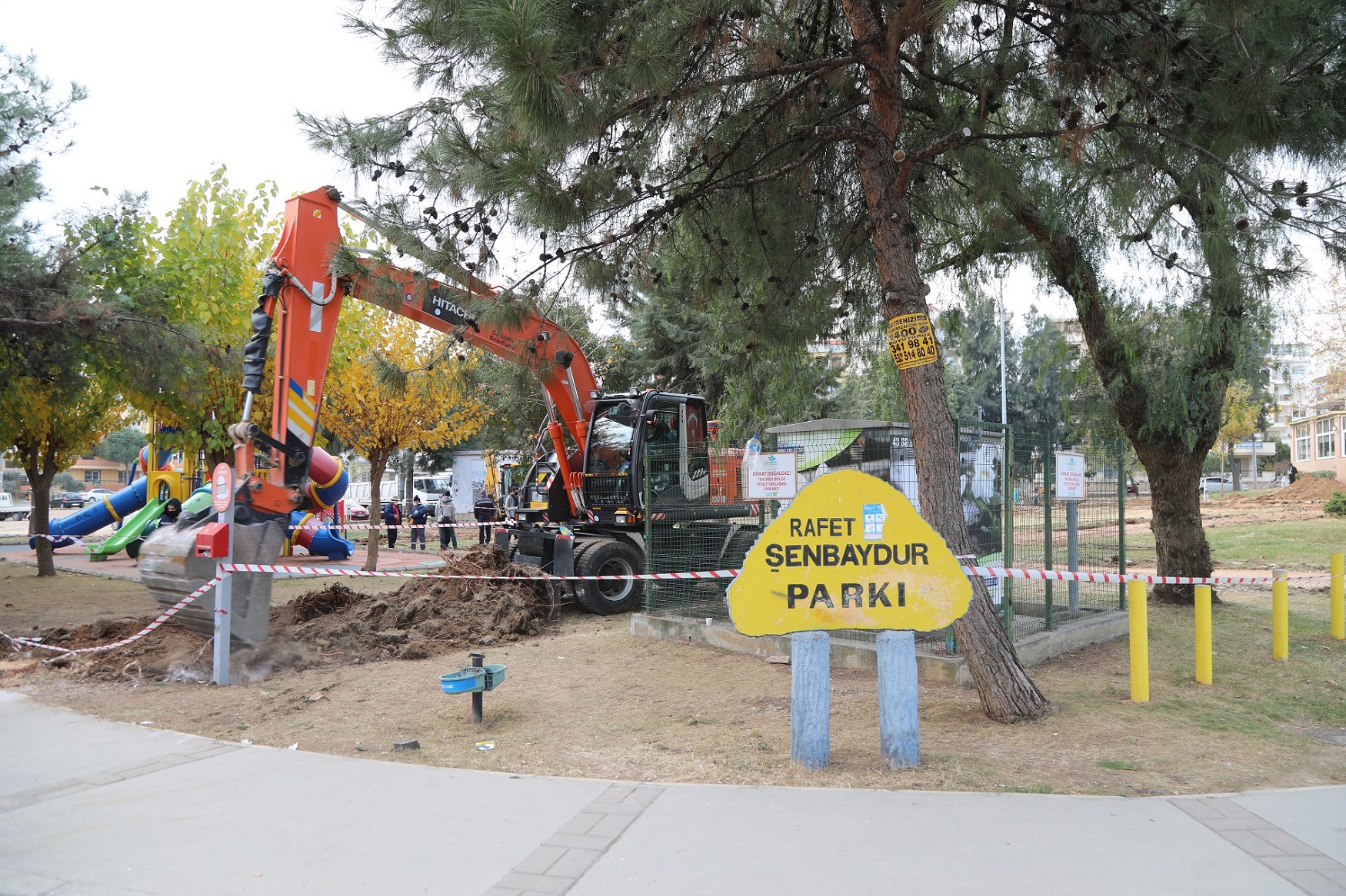 Gaziemir Belediyesinin park ve yeşil alanlarda yürüttüğü bakım, onarım ve yeşillendirme çalışmaları kapsamında Rafet Şenbaydur Parkı baştan sona yenileniyor.