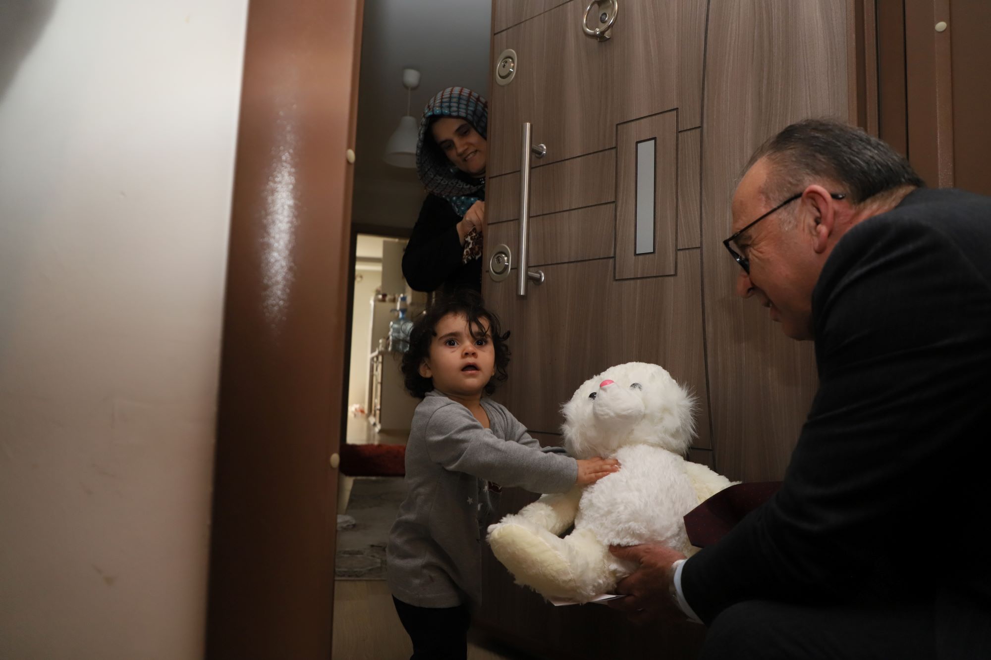 Turgutlu Belediye Başkanı Çetin Akın, Turgutlu Belediyesi deprem komisyonu üyeleri ile birlikte deprem bölgesinden Turgutlu’ya gelerek evlere yerleştirilen depremzedeleri ziyaret etti. Deprem felaketini yaşayan vatandaşlarla sohbet eden Başkan Akın, depremzede çocuklara da oyuncak dağıtarak yüzünü güldürdü.
