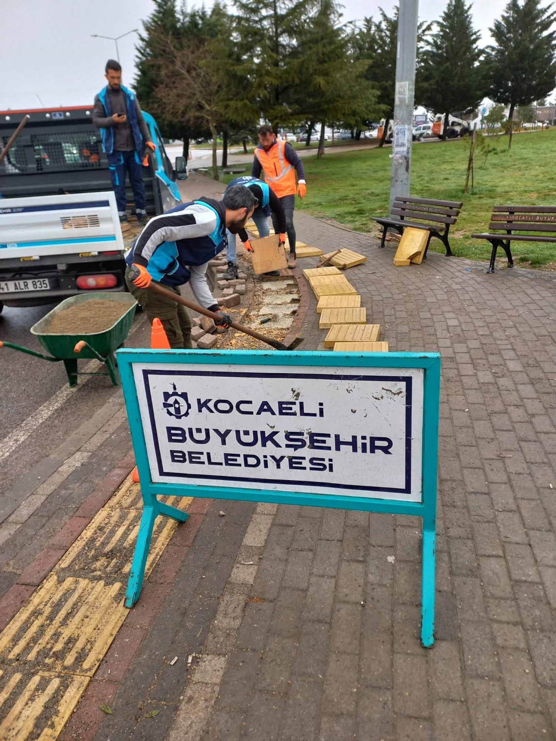 Büyükşehir Yol Bakım Timi, Kocaeli Üniversitesi otobüs durağına ulaşımın sağlandığı kaldırımda bulunan deforme olmuş engelli yolunun onarımını yaptı